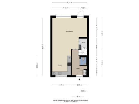 - 98 m² (16,25 meter diep en 6,00 meter breed)