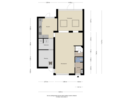 - 60 m² (7,50 meter diep en 8,00 meter breed)