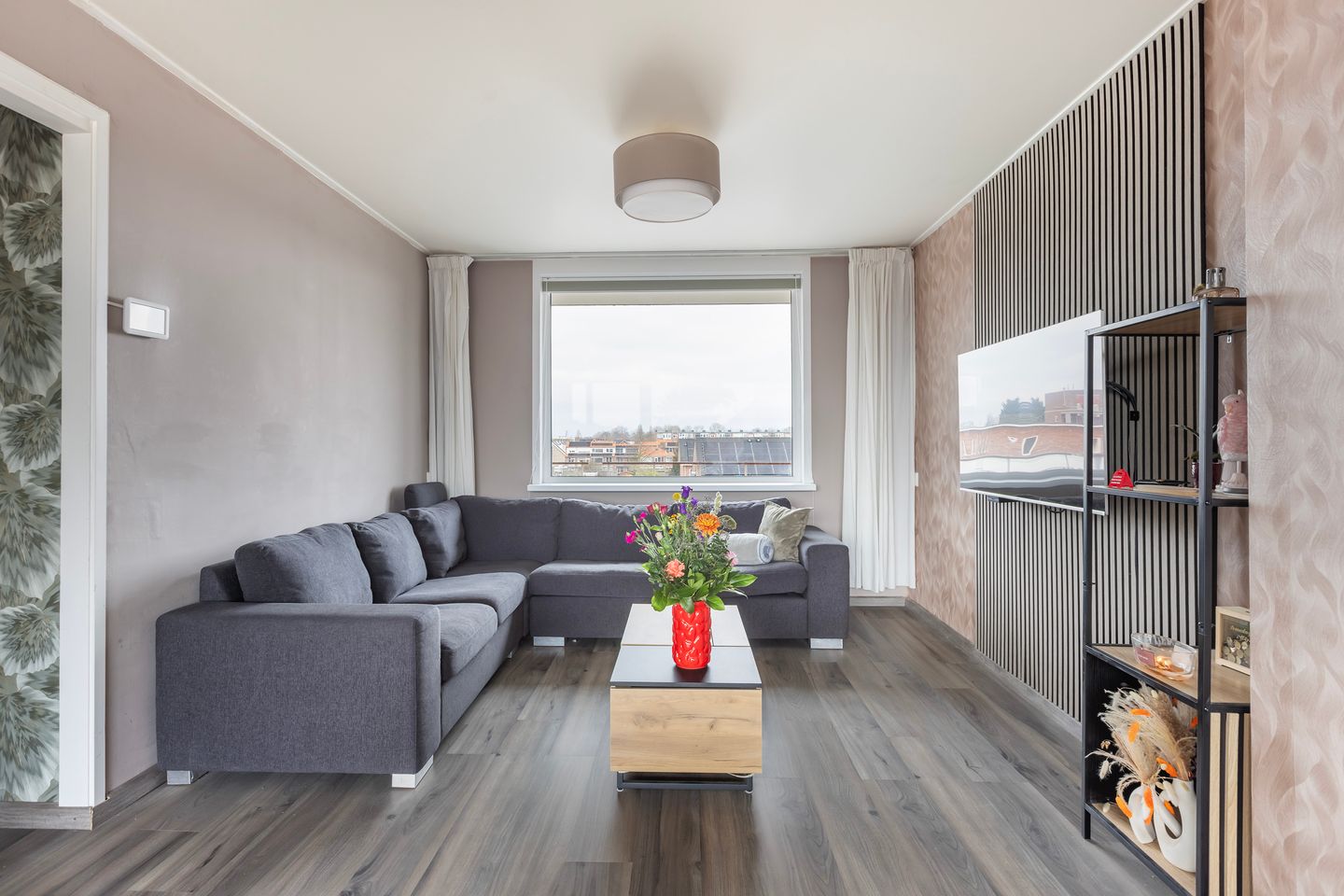 Aan de rechterzijde bevindt zich de royale woon- en eetkamer. Dankzij de grote raampartijen aan zowel de voor- als achterzijde is dit een heerlijk lichte leefruimte. Aan de balkonzijde is recent een nieuwe schuifpui met triple glas geplaatst, wat zorgt voor extra isolatie, comfort en een moderne uitstraling. Vanuit hier stap je direct het balkon op, een fijne plek om buiten te zitten.