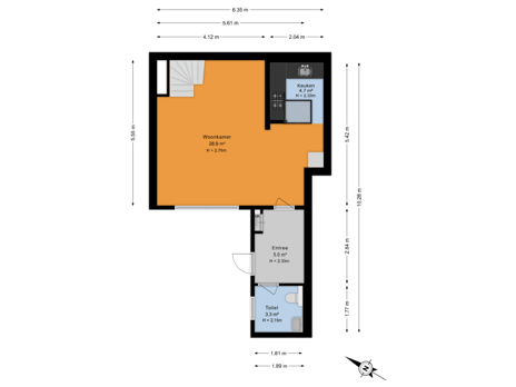 - 23 m² (6,16 meter diep en 3,66 meter breed)