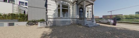 Je betreedt de villa via het hardstenen en gerestaureerde bordes met authentieke zuilen en dubbele voordeur. Aan de gemeenschappelijke ontvangsthal zijn vier technische kasten met meterkast, gasmeter, domotica- en vloerverwarmingssystemen gesitueerd. Bekabeling voor autoladers is reeds in de meterkasten aangelegd. Achter de voordeur links ligt de loopdeur naar de imposante trappenhal met bordestrappen en liftinstallatie naar de verdiepingen. De wanden zijn voorzien van Occhio led-wandarmaturen.