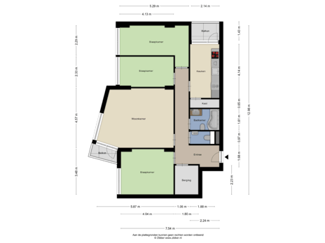 Slaapkamer 3 (13m²) is gelegen naast slaapkamer 2, aan de kopse kant van het complex.