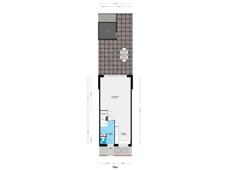 - 56 m² (11,00 meter diep en 5,10 meter breed)