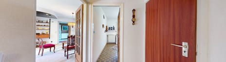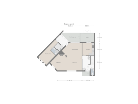 De entreehal geeft toegang tot de kelder, het toilet en de lichte woonkamer. De keuken sluit aan op een praktische serrekamer met toegang tot de tuin. De voormalige garage is omgebouwd tot een zelfstandige werk-/slaapkamer met eigen badkamer en toilet — ideaal voor gasten, werk aan huis, zorg of hobby.