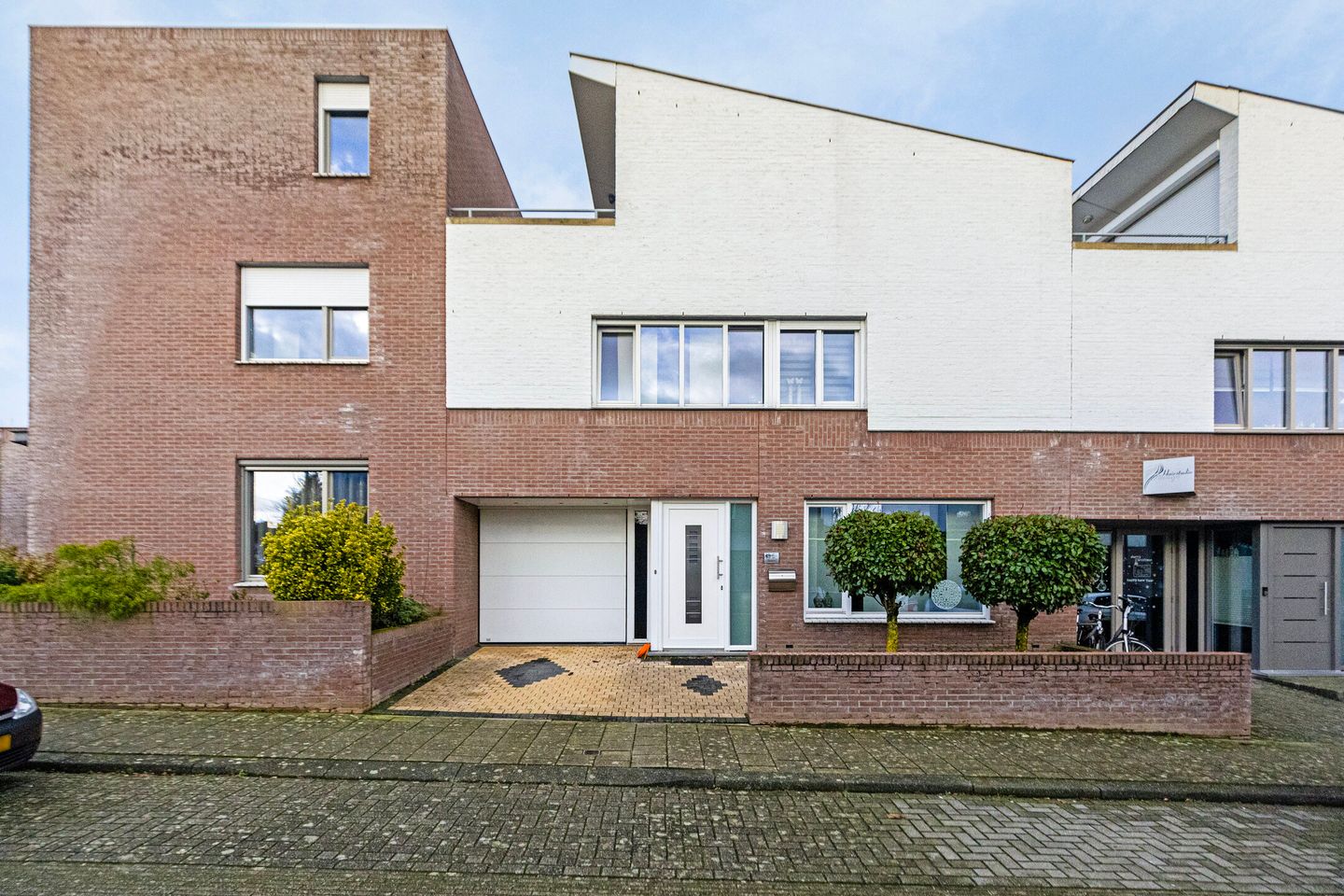 De voortuin is in zijn geheel bestraat en voorzien van een overdekte entree.