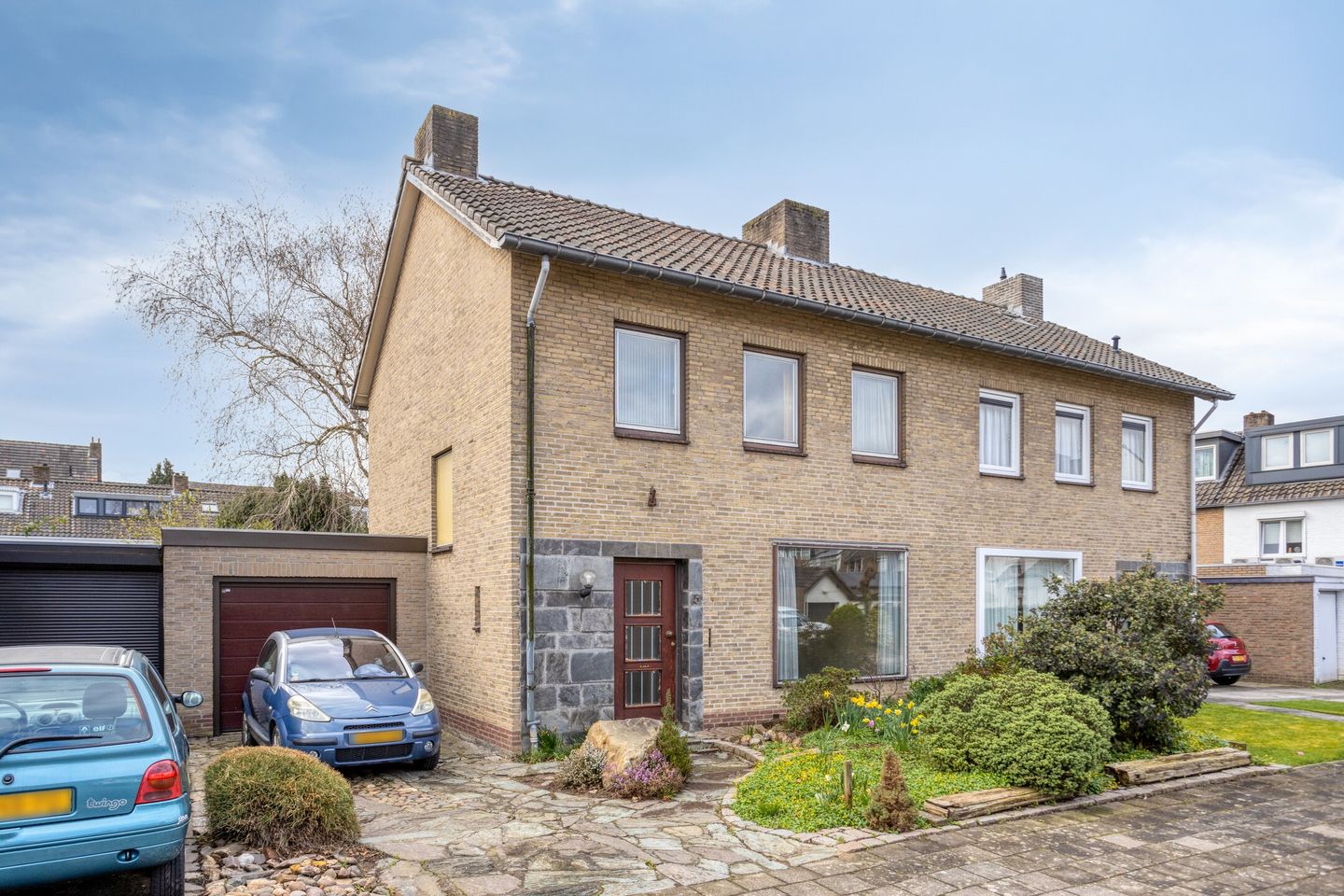 Karakteristieke 2-onder-1-kapwoning met ruime aanbouw, garage en een diepe, groene achtertuin.
