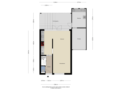 Via de overkapping is de bijkeuken (10,6m²) te bereiken middels een loopdeur.