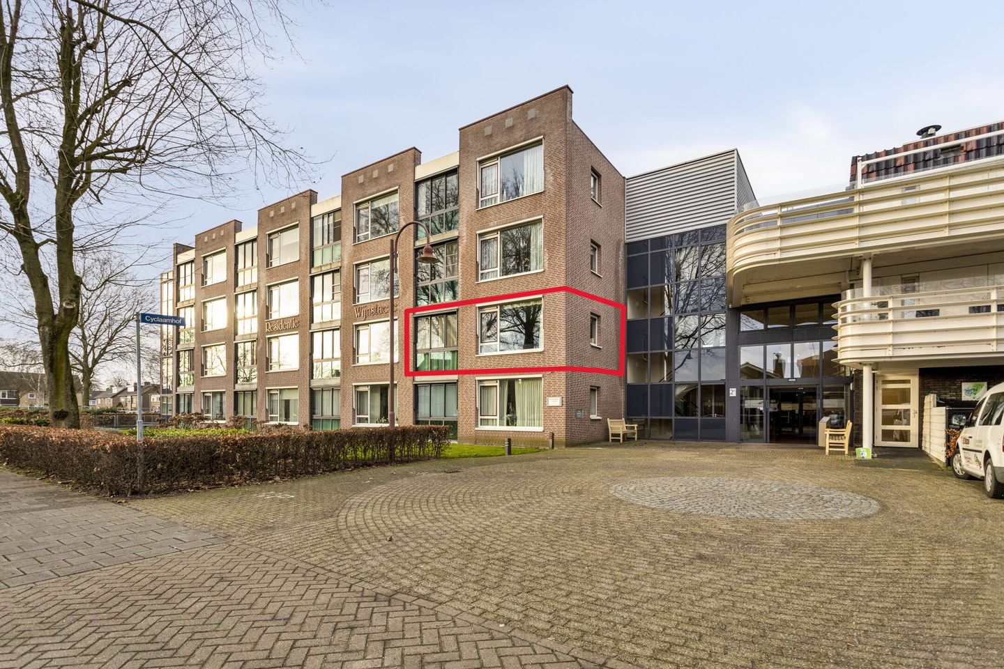 De centrale toegang van “Residentie De Wijnstaete” bevindt zich via de hoofdingang van woon-/zorgcentrum “De Wijngaerd”. De linkerzijde van de centrale hal biedt toegang tot het trappenhuis en de lift van het betreffende appartementencomplex. Hier bevinden zich tevens het bellentableau en de brievenbussen.