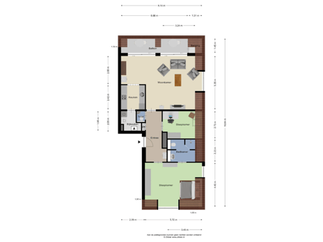 - Deze brochure bestaat uit vrijblijvende informatie en is met de grootste zorg samengesteld, echter aan de inhoud van deze brochure kunnen geen rechten worden ontleend. Indelingstekeningen en maatvoeringen zijn slechts indicatief, kunnen afwijken van de werkelijke situatie en zijn uitsluitend bedoeld om een indruk te geven van de indeling.