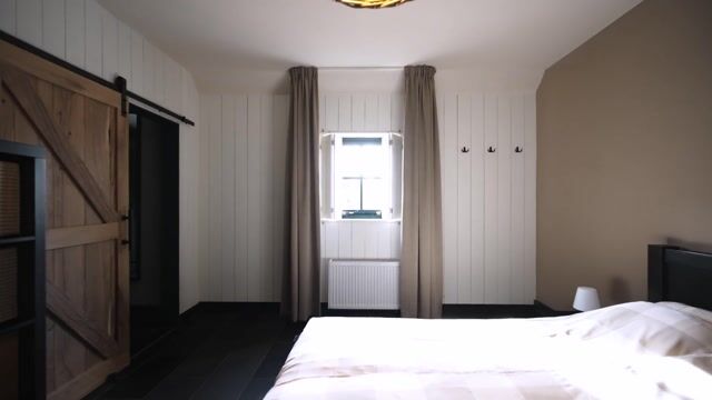 De indeling van deze luxe woonboerderij is zeer ruim opgezet. De royale entree biedt middels glazen openslaande deuren toegang tot de ruime hal. De entree en hal zijn voorzien van een Belgisch natuurstenen tegelvloer. Vanuit de hal is de garderobe, het toilet, de master bedroom en een tweede slaapkamer/ werkkamer met riante inloopkast bereikbaar. Aan het einde van de hal bevindt zich de sfeervolle woonkamer.