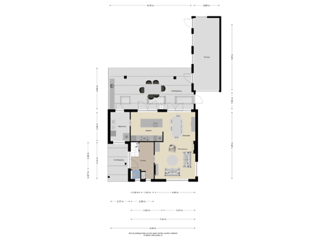 • Tuinkamer: Gelijk achter de woning een zeer ruime tuinkamer (9.16 m breed en 4.64 m diep), die voorzien is van 3-tal lichtkoepels. De overkapping is af te sluiten en kan verwarmd worden door de houtkachel. Hier kan je ook in de avond heerlijk genieten!