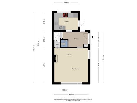 - 106 m² (9,82 meter diep en 10,83 meter breed)