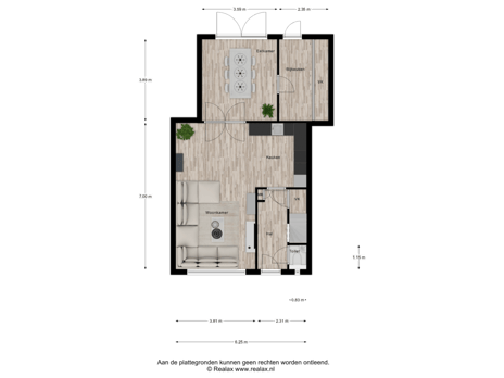 - 63 m² (12,50 meter diep en 5,00 meter breed)