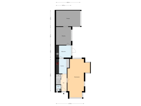 - 55 m² (12,00 meter diep en 4,60 meter breed)