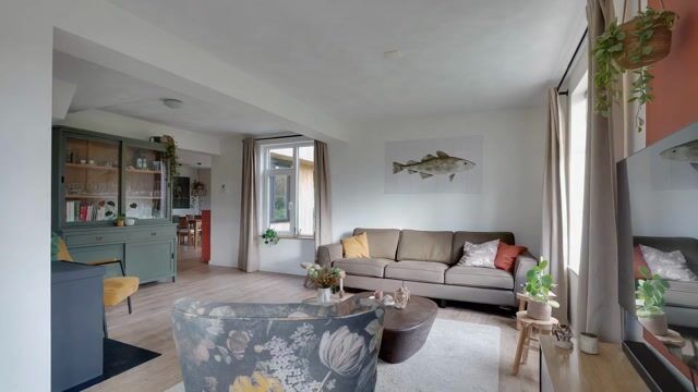 De woning beschikt over een zeer ruime open living van ruim 80m2 bestaande uit een sfeervolle woonkamer, een grote eetkeuken en een aangrenzende tuinkamer. De woonkamer heeft een bijzonder prettige lichtinval, een houtkachel en een gezellig erker. Vanuit de woonkamer is de kelder bereikbaar. In de aangrenzende grote woonkeuken, welke van alle gemakken is voorzien, kunnen kookliefhebbers hun hart ophalen. Het is een heerlijke plek om uitgebreid te koken en lekker lang te tafelen. Via stalen schuifdeuren stapt men de zeer royale tuinkamer binnen waar men een schitterend zicht heeft op de tuin. De aanwezigheid van een grote schuifpui zorgt ervoor dat er een directe verbinding tussen de tuin en de kamer kan worden gecreëerd. Aansluitend aan de tuinkamer bevindt zich een riante hal met volop mogelijkheden tot het creëren van opbergruimte. Vanuit de hal bereikt men de bijkeuken (ca. 13m2) gesitueerd in de garage. De woning kan levensloopbestendig worden gemaakt door in de bijkeuken een badkamer te realiseren en de tuinkamer te transformeren naar een slaapkamer.