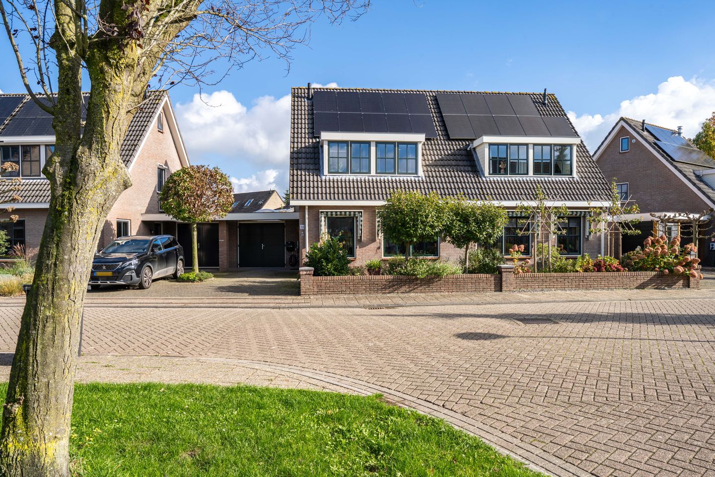 Nadat we de auto op de oprit (er passen er 2 prima op) hebben geparkeerd, lopen we naar de voorzijde en kijken, vanonder de overkapping met lichtkoepel, goedkeurend naar de karakteristieke, nieuwe voordeur. Deze blik is kenmerkend voor de rest van de woning. Alles is keurig verzorgd, geüpdatet en klaar voor gebruik.