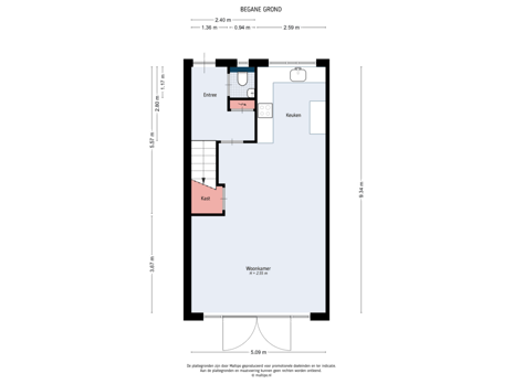 - 83 m² (11,00 meter diep en 7,50 meter breed)