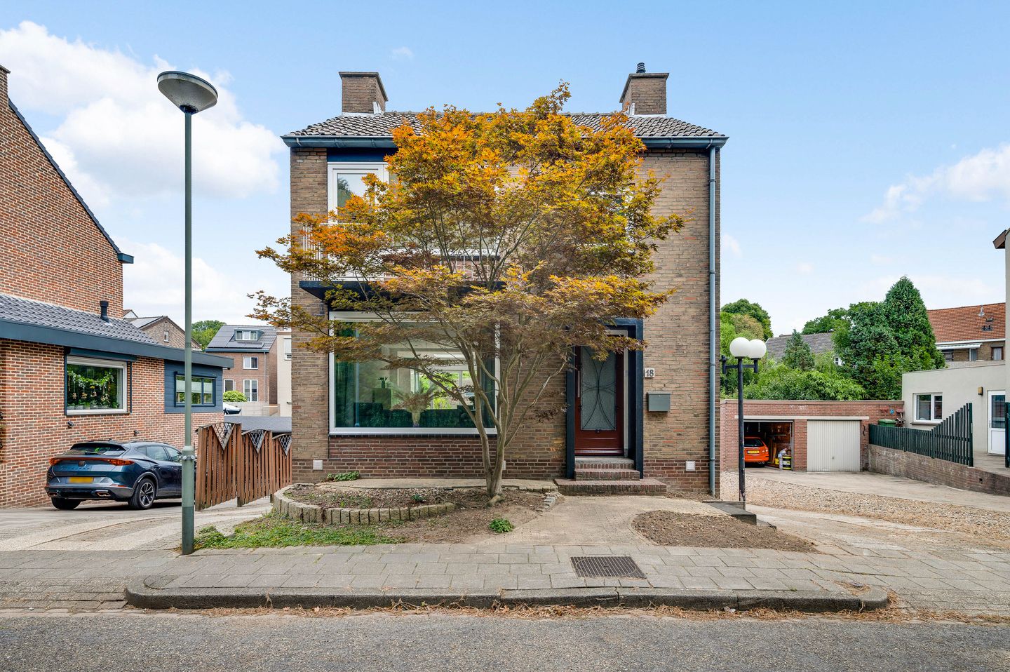 Aan beide kanten van de woning is een oprit, waarbij de oprit aan de rechterzijde richting de achtertuin en de garage in het souterrain gaat. Ook staat er een multifunctioneel bijgebouw van circa 6,35 x 3,47) met een recent geplaatste toiletruimte en een keuken met inbouwapparatuur. Deze ruimte is perfect als thuiskantoor, hobbyruimte, atelier of als slaapplek voor vrienden en familie die op bezoek komen in Meerssen.