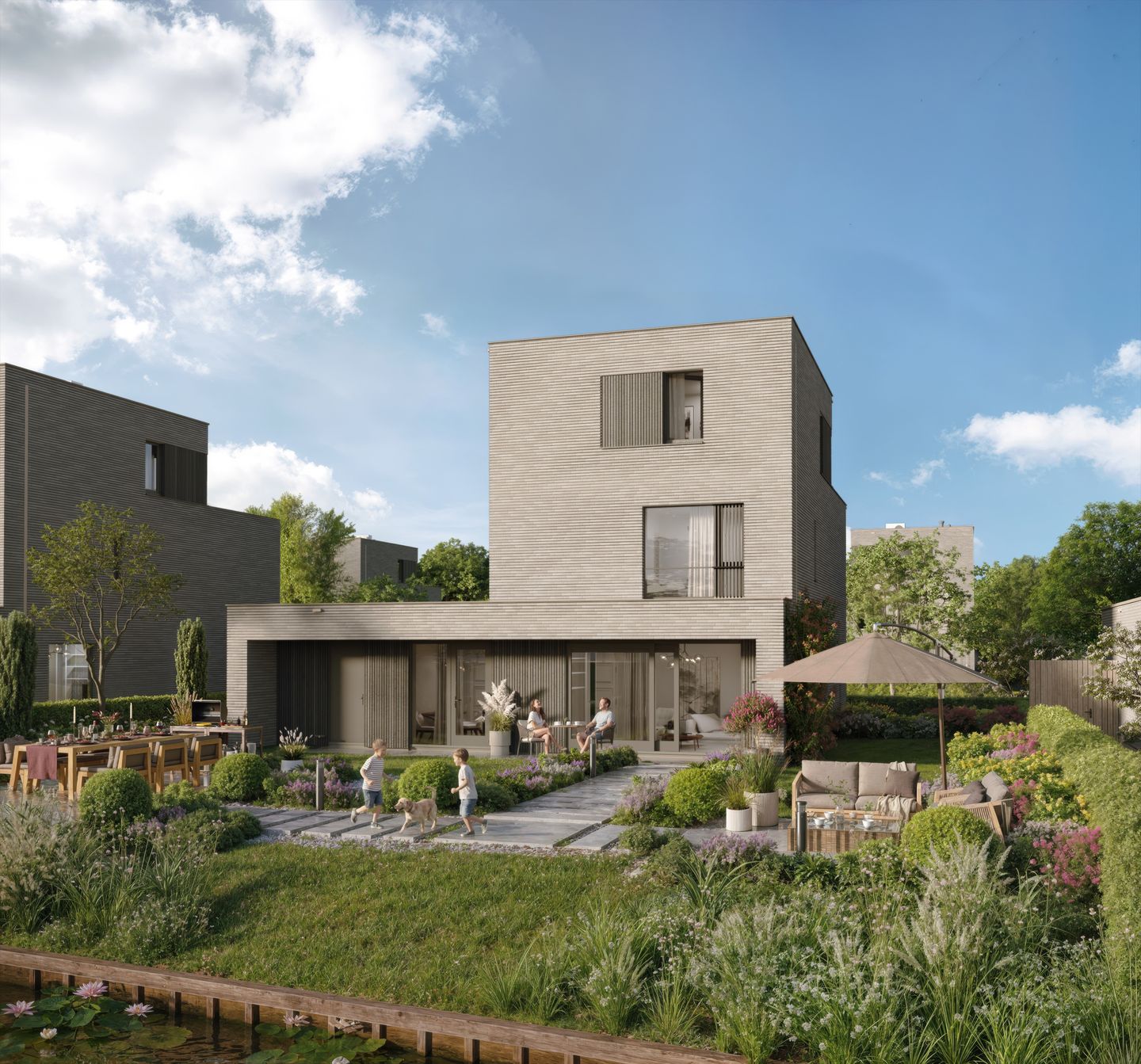 Elke woning is ontworpen met oog voor detail en voorzien van een hoogwaardig luxe afwerkingsniveau. De oriëntatie op het water zorgt voor optimale lichtinval, prachtige vergezichten en een ultiem gevoel van vrijheid. Daarnaast bieden de woningen volop flexibiliteit, zoals een optioneel kantoor aan huis of extra slaapkamers, ideaal voor groeiende gezinnen, thuiswerkers of gasten.
