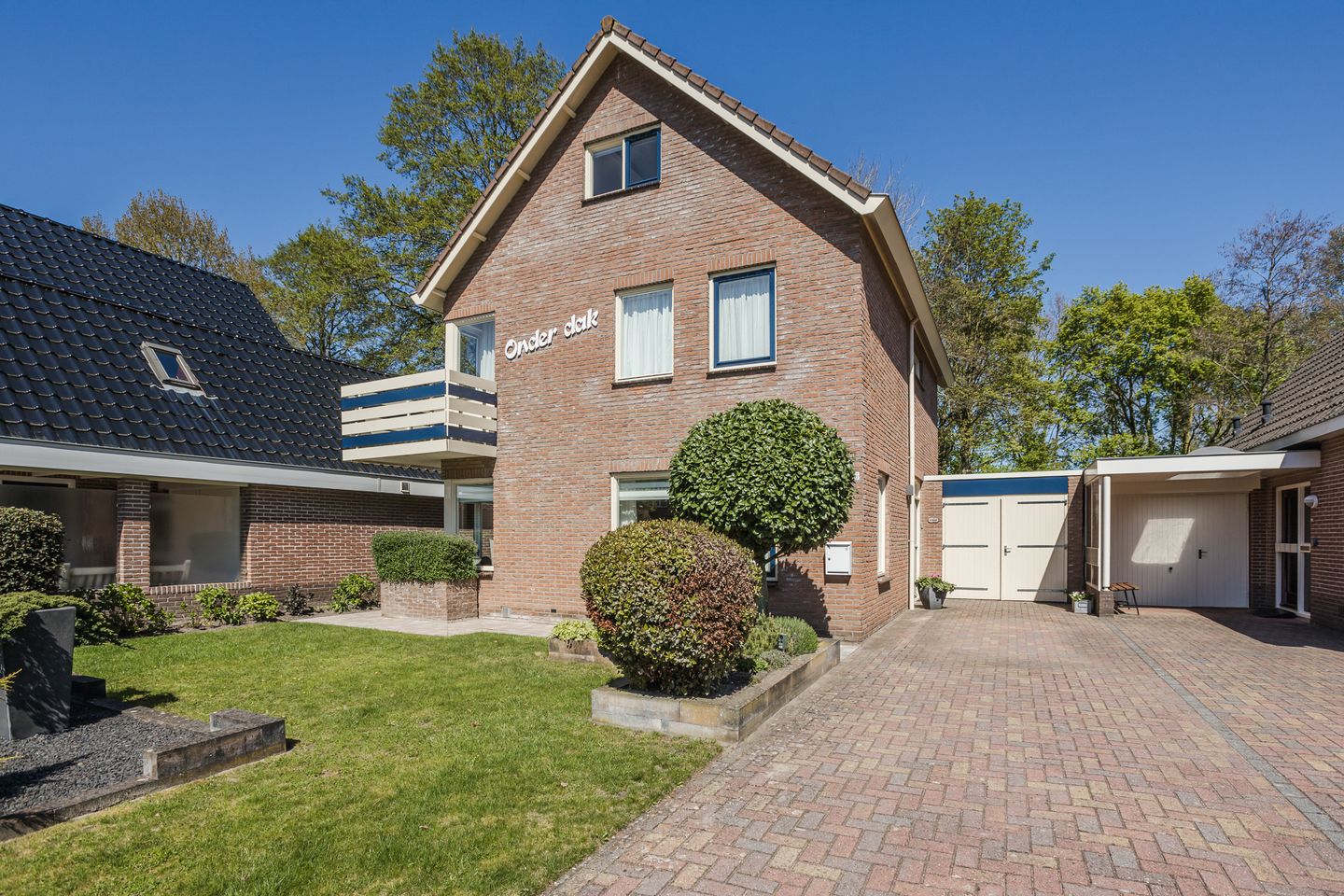 Bij binnenkomst kom je in een royale entree met trapopgang en een modern toilet v.v. fontein. De woonkamer is heerlijk licht dankzij de ramen rondom, wat zorgt voor een open en uitnodigende sfeer. De moderne open keuken is van alle gemakken voorzien, zoals een inductiekookplaat, koelkast, vaatwasser en combi-magnetron. Aan de tuinzijde vind je een gezellig barretje, een fijne plek voor een ontbijt of om bij te praten terwijl er gekookt wordt. Aansluitend bevindt zich de bijkeuken met ruimte voor witgoed en een handige voorraadkast. Vanuit hier loop je zo de besloten achtertuin in. Deze tuin biedt veel privacy en is een heerlijke plek om te ontspannen. In de zomer kun je hier vanaf de middag genieten van de zon. De fraaie, ruime overkapping met berging maakt het plaatje compleet en zorgt ervoor dat je ook bij minder weer buiten kunt zitten. De aangebouwde garage is eveneens via de tuin bereikbaar en op de oprit is plek voor maar liefst drie auto’s.
