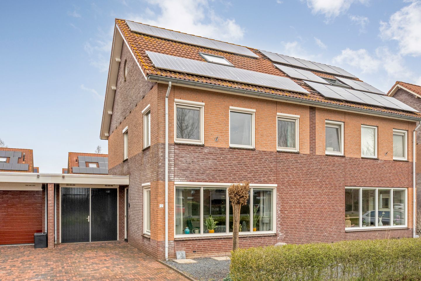 De buitenruimte is verzorgd en functioneel ingericht met een prettig terras waar het goed vertoeven is. Daarnaast beschikt de woning over een aluminium overkapping, wat het mogelijk maakt om ook bij minder weer buiten te zitten. De oprit biedt ruimte voor het parkeren van twee auto’s op eigen terrein.
