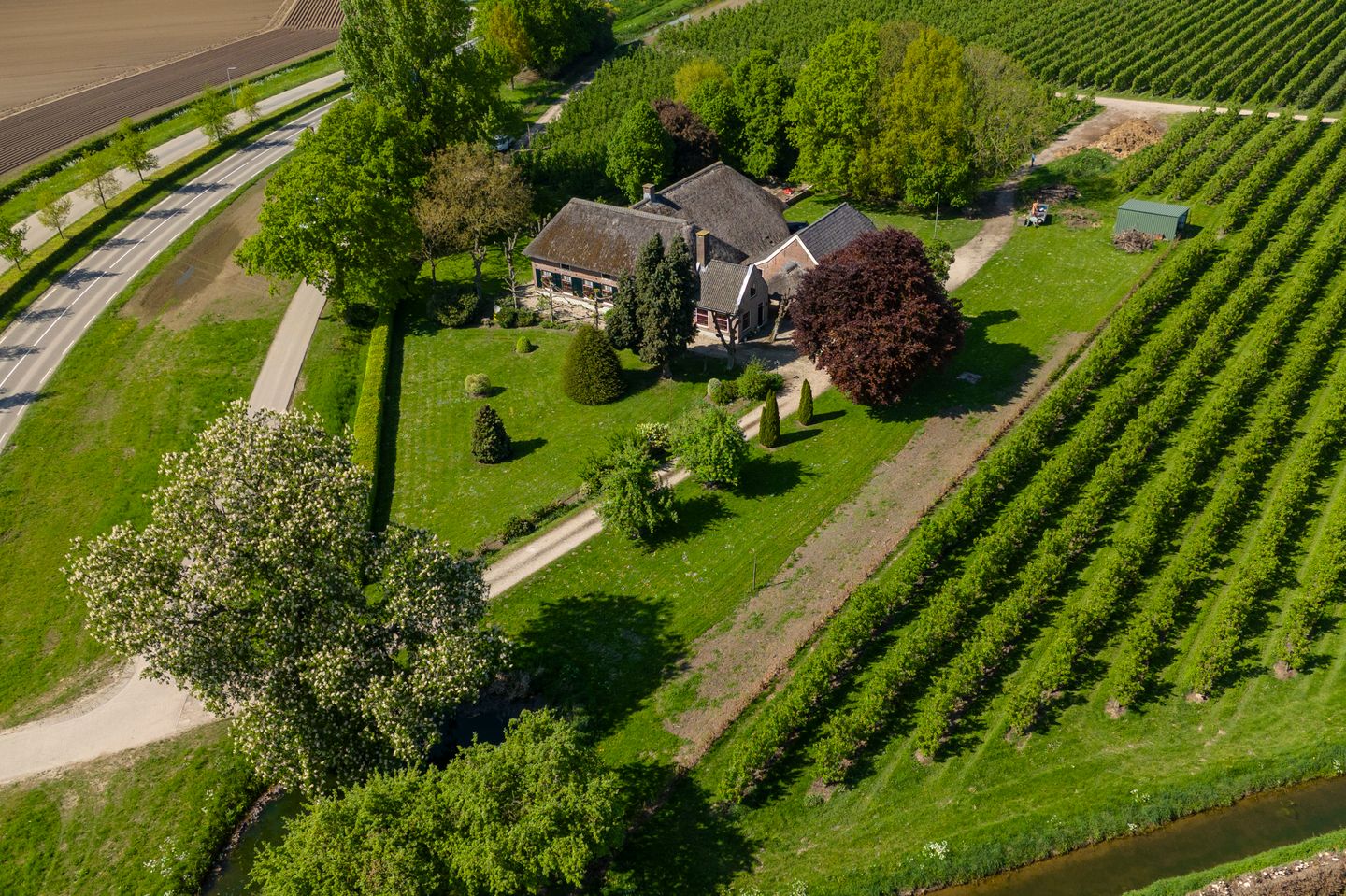 Een oprijlaan, een rietgedekte woonboerderij en schitterend uitzicht over uitgestrekte landerijen; deze woonboerderij in het buitengebied van Meteren is een buitenkans voor wie royaal en vrij wil wonen. De houten balken, luiken voor de ramen, robuuste muren en klassieke details ademen historie, terwijl je hier ook alle vrijheid hebt om het huis naar jouw wensen te moderniseren. En dan die locatie… open, weids en omringd door groen, met aan alle kanten zicht op de natuur. Binnen word je verrast door de zee aan ruimte. De woonboerderij biedt onder meer drie slaapkamers op de begane grond, een gezellige woonkamer, een royale woonkeuken én een verrassende opkamer met een extra bovenkamer. Vanuit de keuken loop je zó de kelder in, perfect voor opslag of het bewaren van goede wijn. En alsof dat nog niet genoeg is: de voormalige deel is inpandig bereikbaar en biedt eindeloze mogelijkheden. Denk aan een royale living met hoge plafonds, stoere houten balken en een glazen pui die uitzicht biedt over het achterliggende landschap—het ultieme binnen-buitengevoel. Ook buiten valt er genoeg te ontdekken. De tweede vrijstaande schuur, een voormalige vloedschuur, is eveneens riant, met een volwaardige verdieping en een afgesloten zijruimte welke vroeger dienst deed als bietenkelder. Ideaal voor wie werk aan huis wil combineren met wonen, een atelier zoekt of simpelweg veel ruimte nodig heeft.