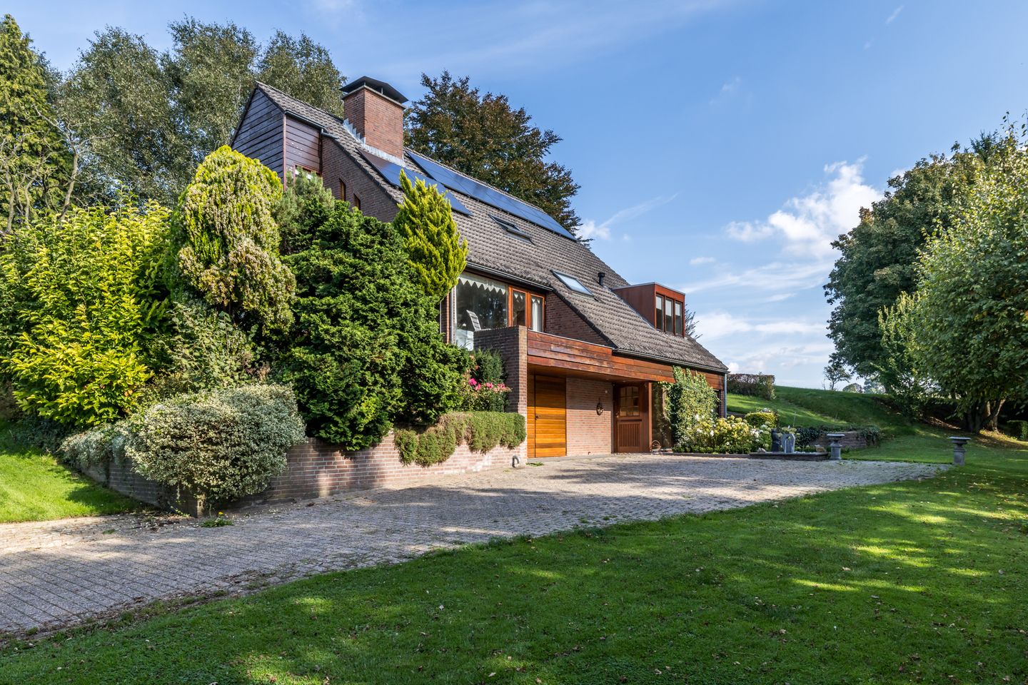 Welkom in Mheer, een prachtig dorp in het Limburgse Heuvelland. Leunend tegen België en omringd door prachtige natuur is dit een fantastische plek om te wonen, op iets meer dan een kwartier van Maastricht. Het dorp, onder andere bekend vanwege het prachtige kasteel, kent een rijk verenigingsleven en heeft, zoals veel dorpen, een Dorpsstraat. Aan deze straat, die al slingerend zijn weg door het dorp zoekt, staat dit vrijstaande woonhuis op maar liefst 2.200 m2 eigen grond. U ziet het huis niet vanaf de weg, want eerst moet u een pad omringd door groen naar boven volgen…