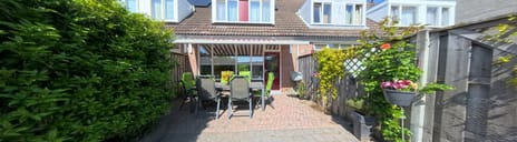De achtertuin is verzorgd aangelegd, biedt veel privacy en ligt gunstig op het zuidoosten. Hier geniet u vrijwel de hele dag van de zon. Het ruime terras en de buitenzonwering maken het een fijne plek om te ontspannen of te tafelen. Aan de voorzijde van het huis vindt u een onderhoudsarme voortuin met ruimte voor een zitje.