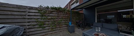 De zonnige tuin op het zuidwesten is een heerlijke plek om te ontspannen. Aan de achtergevel is een nieuwe overkapping met doek geplaatst, zodat u tot in de late uurtjes buiten kunt genieten. De onderhoudsvrije, geïsoleerde berging met keraliet afwerking en de vrije achterom maken het geheel compleet.