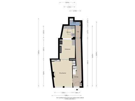 - 30 m² (5,00 meter diep en 6,00 meter breed)