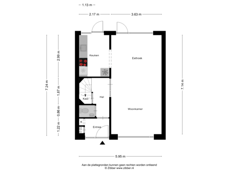 - 55 m² (10,00 meter diep en 5,50 meter breed)