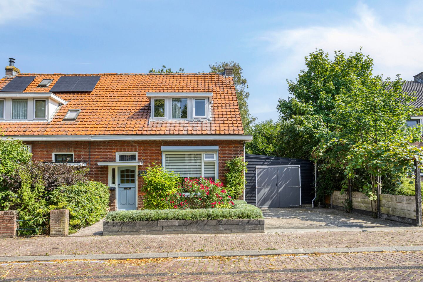 Aan de voorkant is er een oprit waar 2 auto's kunnen staan.