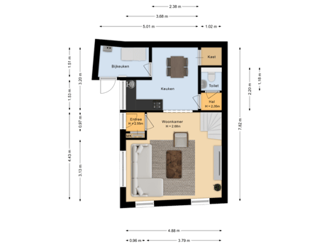 - 23 m² (6,50 meter diep en 3,20 meter breed)