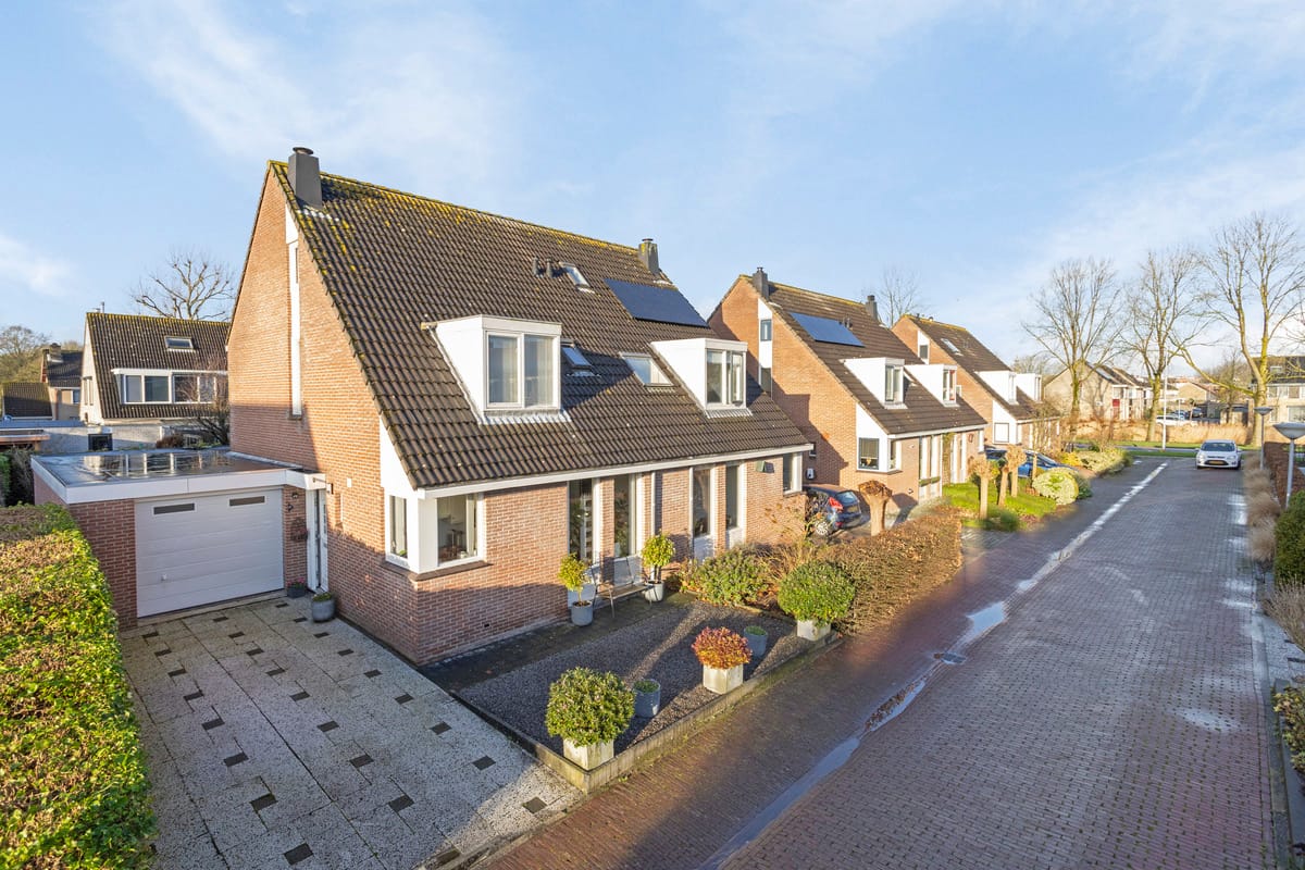 De fraai verzorgde tuin heeft een ligging op het westen, waar je heerlijk kunt genieten van de zon. De aangebouwde garage is ideaal voor opslag of als hobbyruimte en is uitgerust met een elektrische garagedeur.