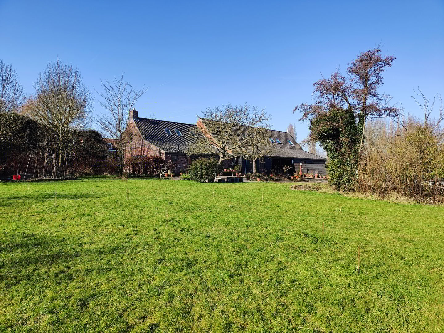 Het stuk land aan de noordkant van de woonboerderij met karakteristieke knotwilgen en een poel, is eventueel ook geschikt voor paarden.