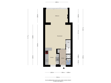 - 58 m² (10,00 meter diep en 5,75 meter breed)