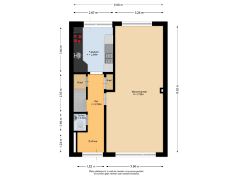 - 62 m² (9,87 meter diep en 6,24 meter breed)