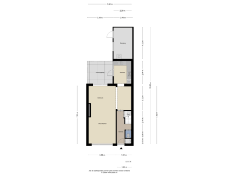 - 60 m² (11,00 meter diep en 5,50 meter breed)