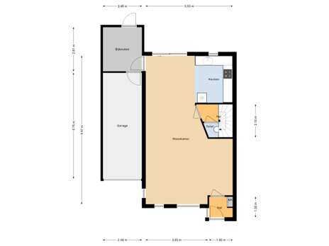 - 80 m² (9,50 meter diep en 9,00 meter breed)