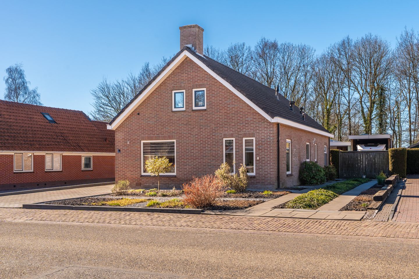 Verzorgd aangelegde tuin gelegen op het zuidwesten met verschillende terrassen om te genieten van zowel de zon als schaduw. De ruime stenen garage ca. 43,5m² groot biedt voldoende ruimte voor het stallen van een auto, fietsen en diverse tuingereedschappen. De luxe tuinkamer met glaswanden is ideaal om in de zomer volop van de rust en de tuin te genieten. Daarnaast is er een campercarport aanwezig. Achter de garage bevindt zich een besloten tuin, die onder andere een terras, gazon en een voormalige moestuin biedt. De tuin grenst aan een park, wat zorgt voor extra privacy en groen uitzicht. De dubbele oprit langs de woning biedt ruim voldoende parkeergelegenheid voor meerdere auto’s op eigen terrein.