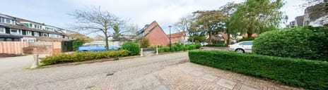 - Vrije, zuidwesttuin ca. 8,5 × 9,5 m met achterom en zonnescherm