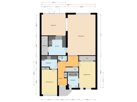 - 80 m² (8,45 meter diep en 9,50 meter breed)