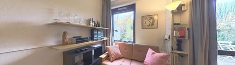 De woonkamer bevindt zich aan de achterzijde en is heerlijk licht dankzij de grote pui naar de tuin. De open haard vormt het sfeervolle middelpunt van de ruimte, terwijl het lamelparket zorgt voor een verzorgde uitstraling. Vanuit de woonkamer stap je direct de zonnige achtertuin in.