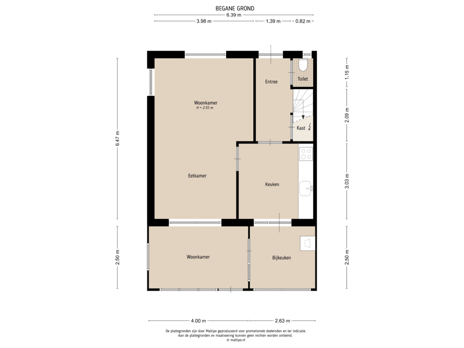 Deze informatie is door ons met de nodige zorgvuldigheid samengesteld. Onzerzijds wordt echter geen enkele aansprakelijkheid aanvaard voor enige onvolledigheid, onjuistheid of anderszins dan wel de gevolgen daarvan. Alle opgegeven maten en oppervlakten zijn indicatief. Wij adviseren u om een adviseur / makelaar in de hand te nemen.