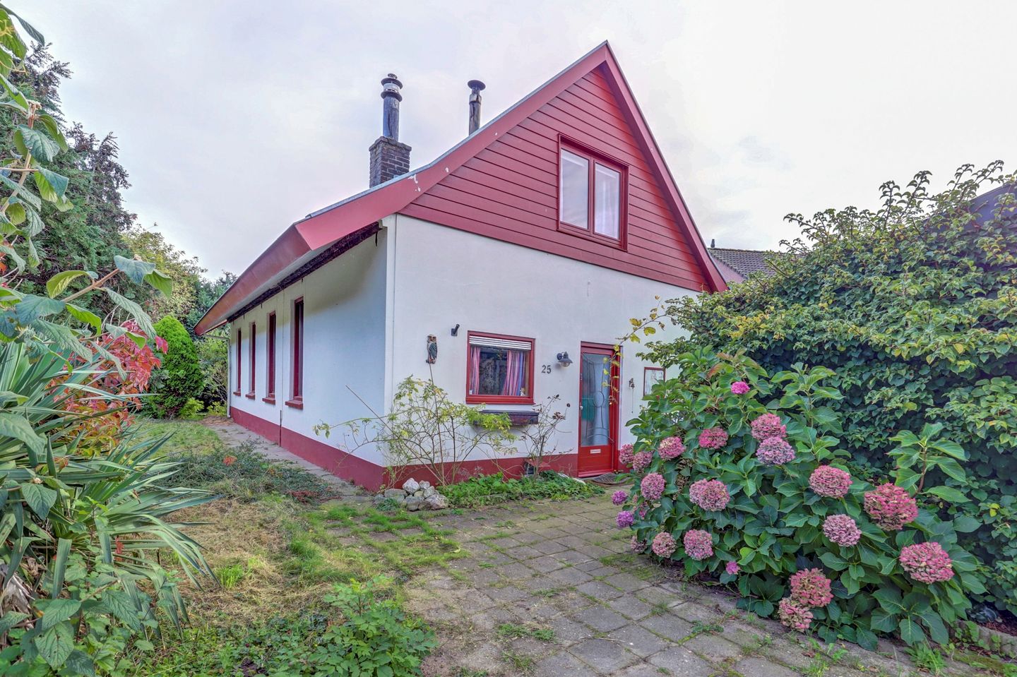 Rondom is een riante tuin met gazon en fruitstruiken, vijverpartij, terrassen en parkeermogelijkheid op eigen terrein.
