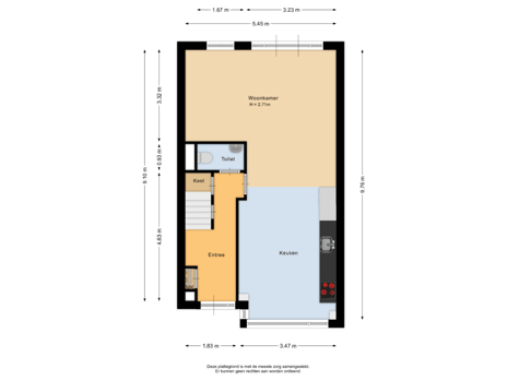 - 64 m² (11,17 meter diep en 5,70 meter breed)