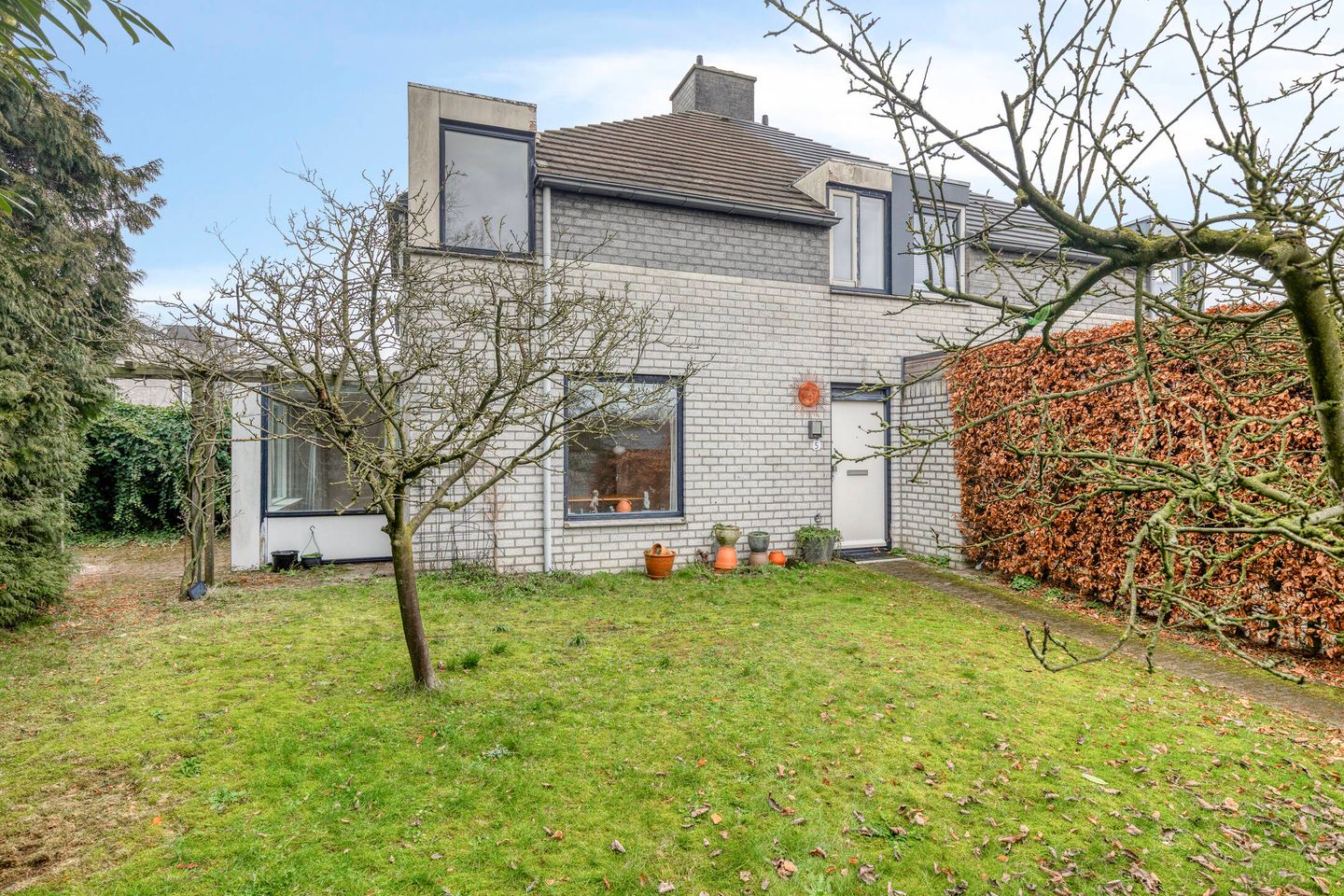 Een tuin met de vibes van een Frans boomgaardje: heerlijk beschut, omzoomd door mooie heesters en gelegen op de zonnige zuidwestkant. Hier geniet je van veel privacy en rust. Direct naast de woonkamer bevindt zich een fijn terras, perfect voor zonnige dagen.