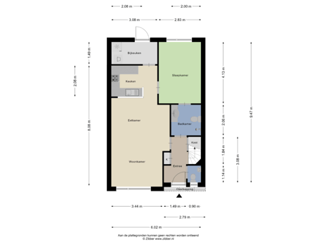 - 42 m² (6,64 meter diep en 6,38 meter breed)