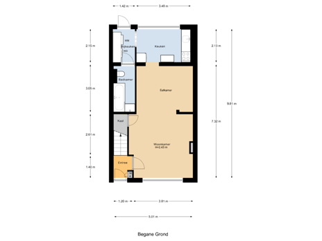 - 44 m² (8,09 meter diep en 5,48 meter breed)