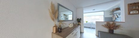 Deze woning verrast direct door de ruimte, doorzonwoonkamer, de praktische indeling en de nette afwerking. De leefruimte voelt licht en open aan, met grote ramen aan zowel de voor- als achterzijde. aan de tuinzijde ligt de keuken met prettig zicht naar buiten, waardoor koken en wonen op een natuurlijke manier samenkomen.